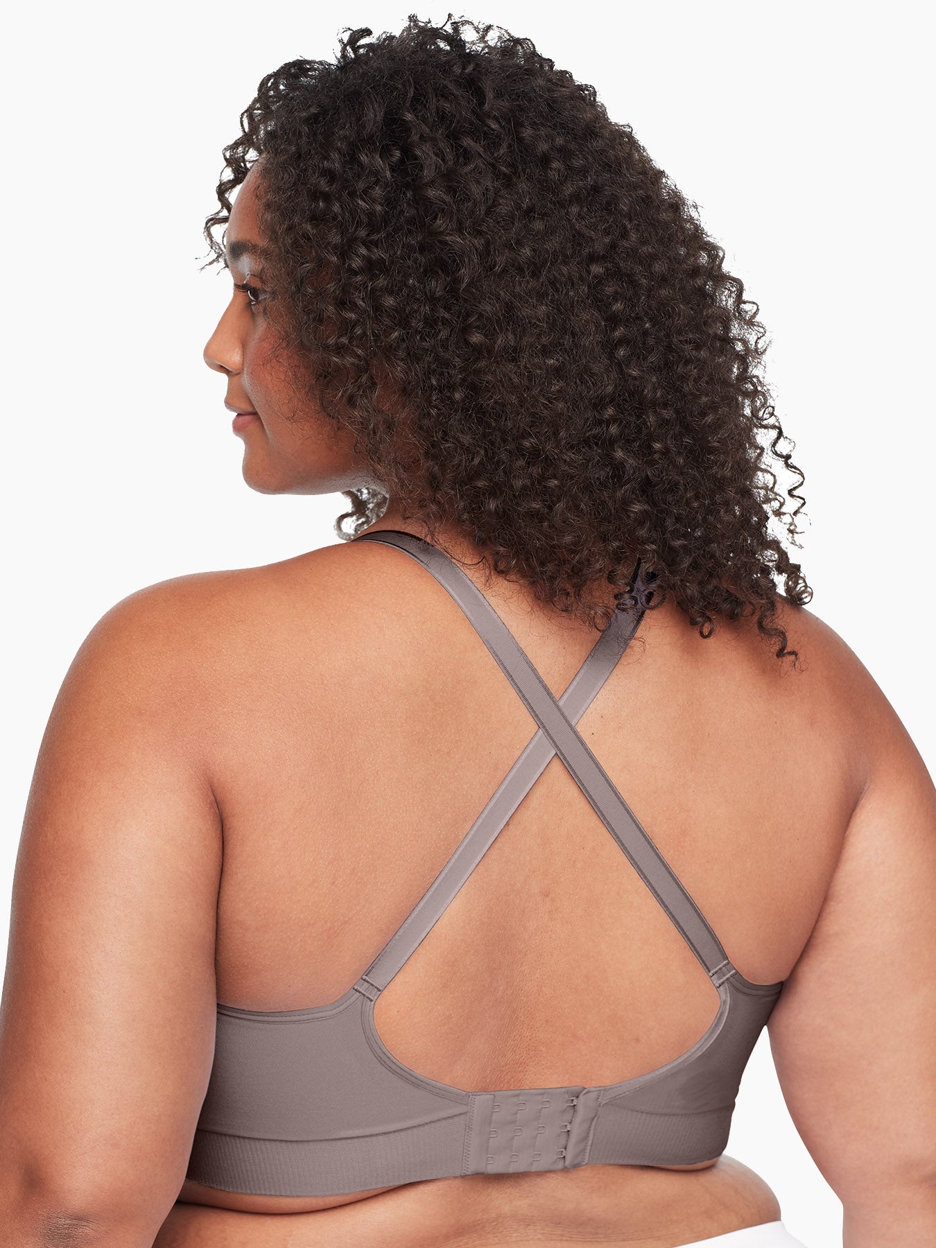 Designed to fit your shape with allover seamless stretch fabric, this Easy Does It™ comfort bra features our signature Easy Size™ system in XS-3X. You'll love the light, natural lift and convertible criss-cross straps.